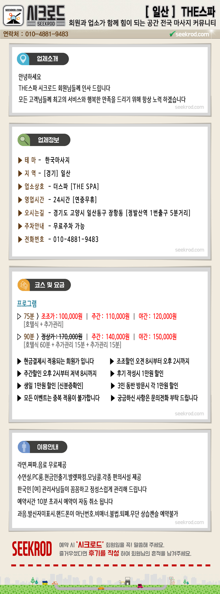 확실한 정보는 시크로드 지역별 제휴샵 게시판에서 확인해주세요